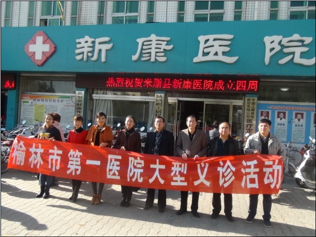 2013年11月7日,在我院各级领导的大力支持和各临床科室的积极配合下,我院绥德院区社区办组织绥德院区神经内科、心血管内科、普通外科、骨一科等科室主任;骨二科、呼吸内科、麻醉科等科室骨干护士及相关医务工作人员前往米脂县新康医院进行了为期一天的义诊,技术协作和健康咨询活动。